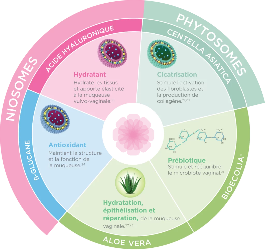 La formulation en gel, avec des composants niosomaux et phytosomaux assure une meilleure hydratation de la zone vulvaire grâce à la meilleure absorption des ingrédients actifs.
